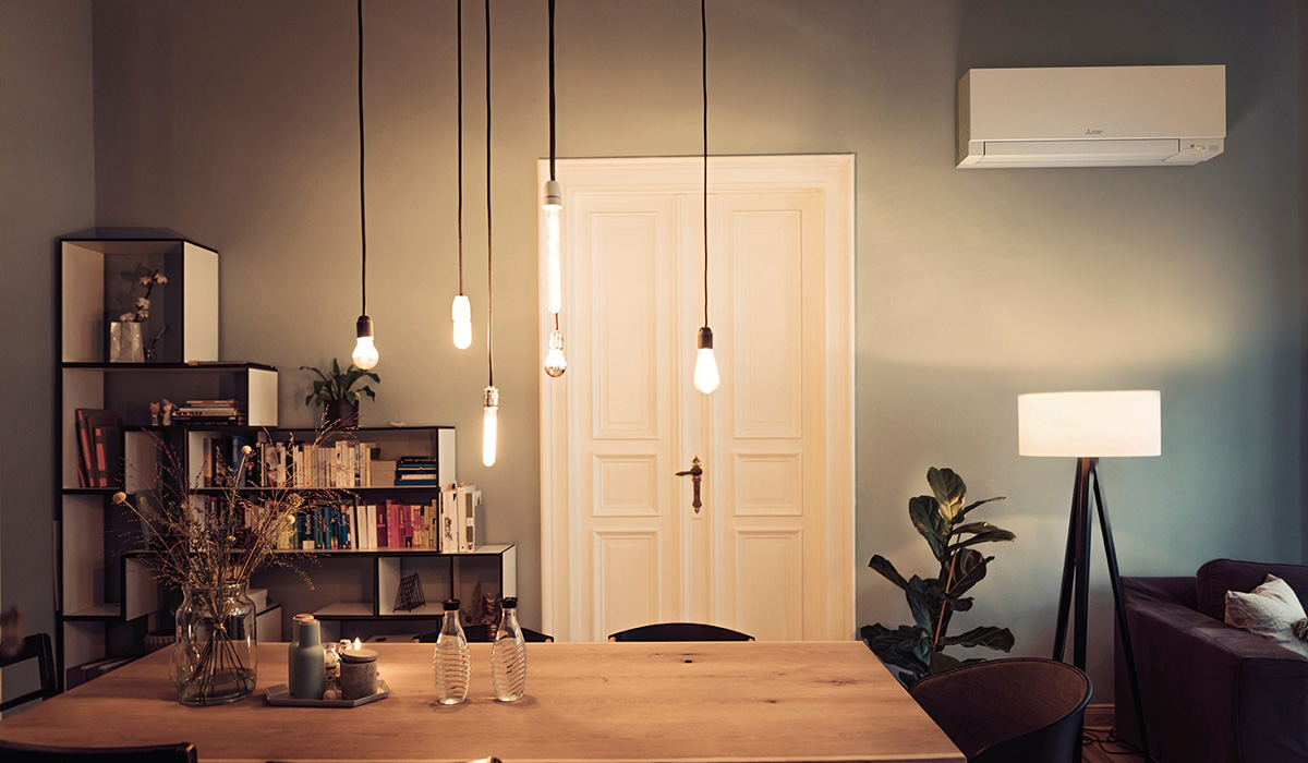 Systém sa skladá z vonkajšej jednotky, ktorá odčerpáva energiu z vonkajšieho vzduchu a jednej, alebo niekoľkých vnútorných jednotiek, ktoré vyfukujú teplý alebo chladný vzduch podľa požiadavky. Pri spotrebe zhruba 1kW elektrickej energie dokážu vyprodukovať do interiéru až 5 kW tepla. Elektrickú energiu využívajú len na pohon kompresora a riadenia. Použitie pre víkendové chaty, rodinné a bytové domy, kostoly, sklady, prevádzky, školy, športové haly a pod. Jednotka sa vyrába v troch farebných prevedeniach. Vďaka tomu sa hodí do každého typu interiéru. Jednotky sú počas celej prevádzky takmer nepočuteľné. Pri jednotkách MSZ-EF22/25 je hladina akustického tlaku v režime chladenia iba 19dB(A). Moderný infračervený ovládač s funkciami ako I-save, Econocool a týždenný časovač. Jednoduché ovládanie a prehľadný displej je samozrejmosťou. Ak je vnútorná jednotka vybavená voliteľným Wi-Fi adaptérom MAC-567IF, zobrazia sa v aplikácií MelCloud údaje o spotrebe. Jednotku môžete cez aplikáciu ovládať na diaľku cez smartphone, PC, alebo tablet. Jednotky Mitsubishi Electric ponúkajú cez príslušné prevodníky možnosť napojiť na všetky druhy nadradených systémov a môžete ich implementovať do systému inteligentného domu.